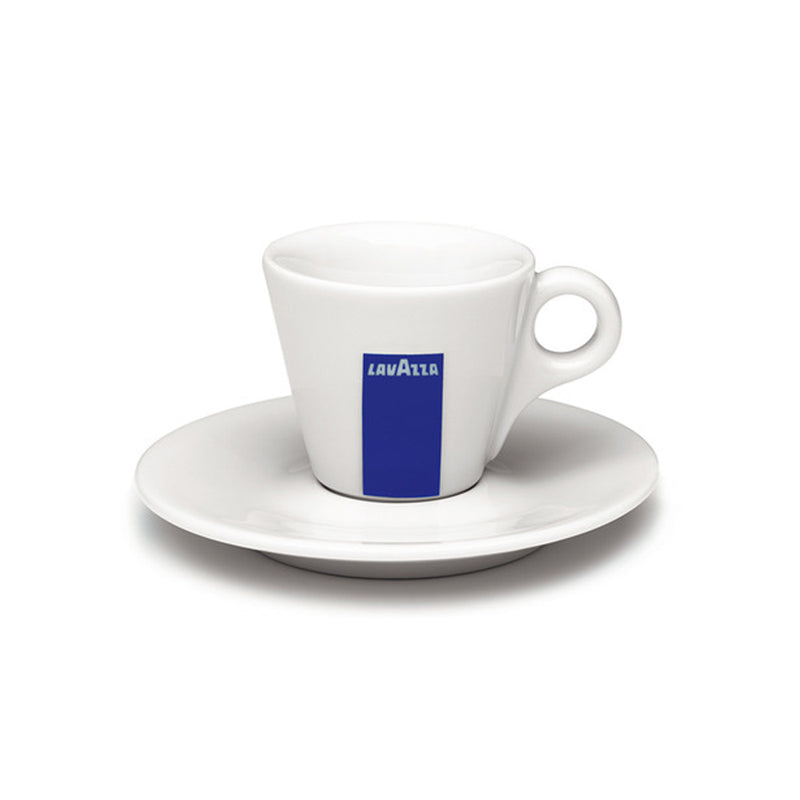 • Both are made of durable, white porcelain, and the 2oz cup features the iconic blue Lavazza label.