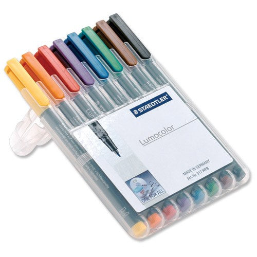 Staedtler 318 Lumocolor Pen Permanent / Fine / Assorted Colours / Wallet of 8 - UK BUSINESS SUPPLIESStaedtler 318 Lumocolor Pen Permanent / Fine / Assorted Colours / Wallet of 8