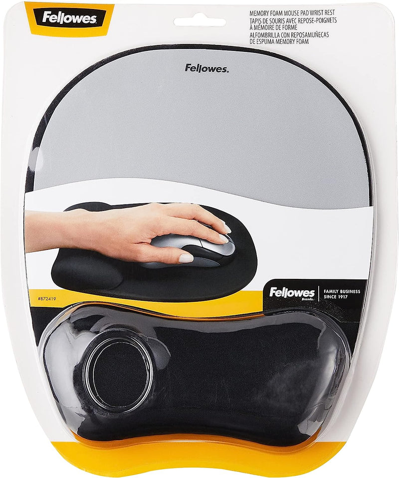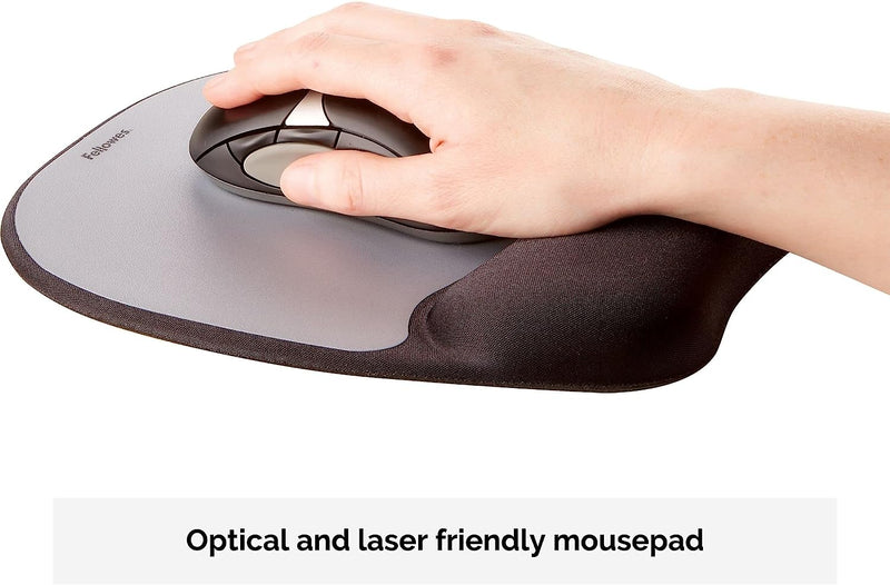 Fellowes Memory Foam Mouse Mat with Wrist Support - Ergonomic Mouse Pad for Computer Laptop - Silver Streak
