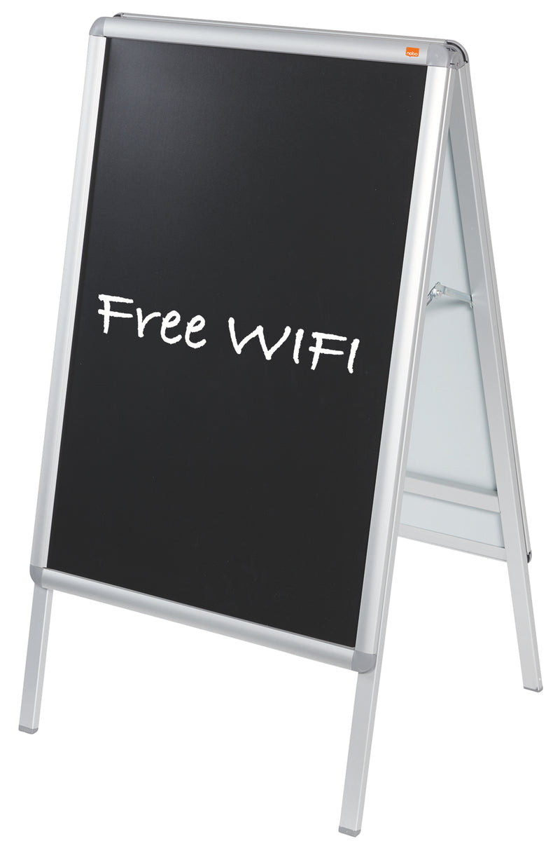 - • Turn you Nobo A-Frame poster display into a blackboard A-Frame for creating erasable chalk signs using chalks or Nobo liquid chalk markers