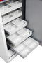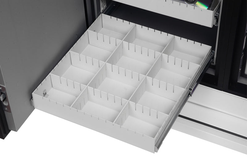 - • FITTINGS – Each unit comes complete with 2 height adjustable shelves and 5 pull out media trays
