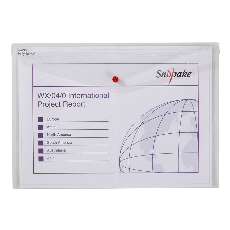 The Snopake Polyfile was launched in 1995, as a tough, elegant and environmentally-friendly alternative to the manilla folder. Manufactured from tough, long-lasting polypropylene, it is easy to wipe clean and is available in an array of vibrant colours and soft clear pastels. Complete with a coloured press-stud that ensures that documents stay safely inside the folder.