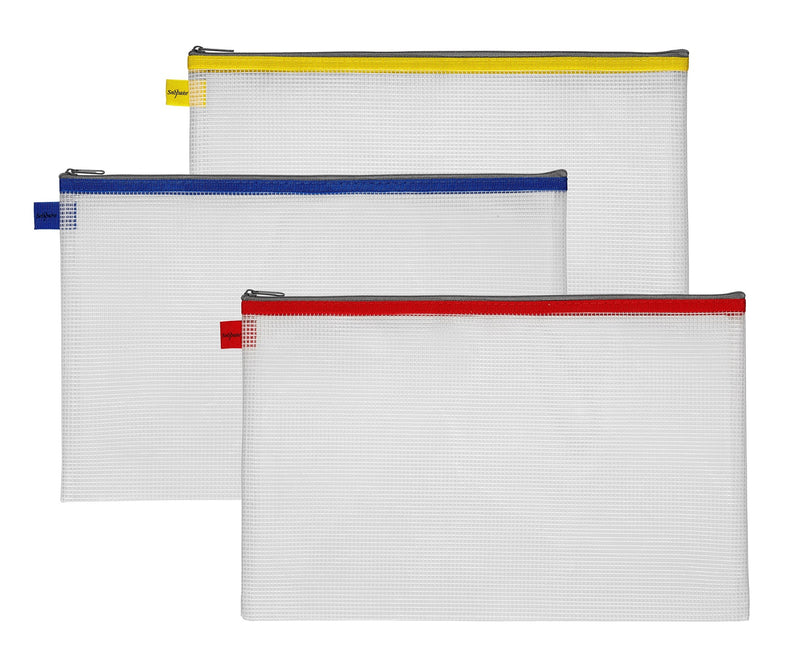 Snopake Mesh Zippa Bag EVA Foolscap 300 Micron Assorted Colours (Pack 3) - 15819