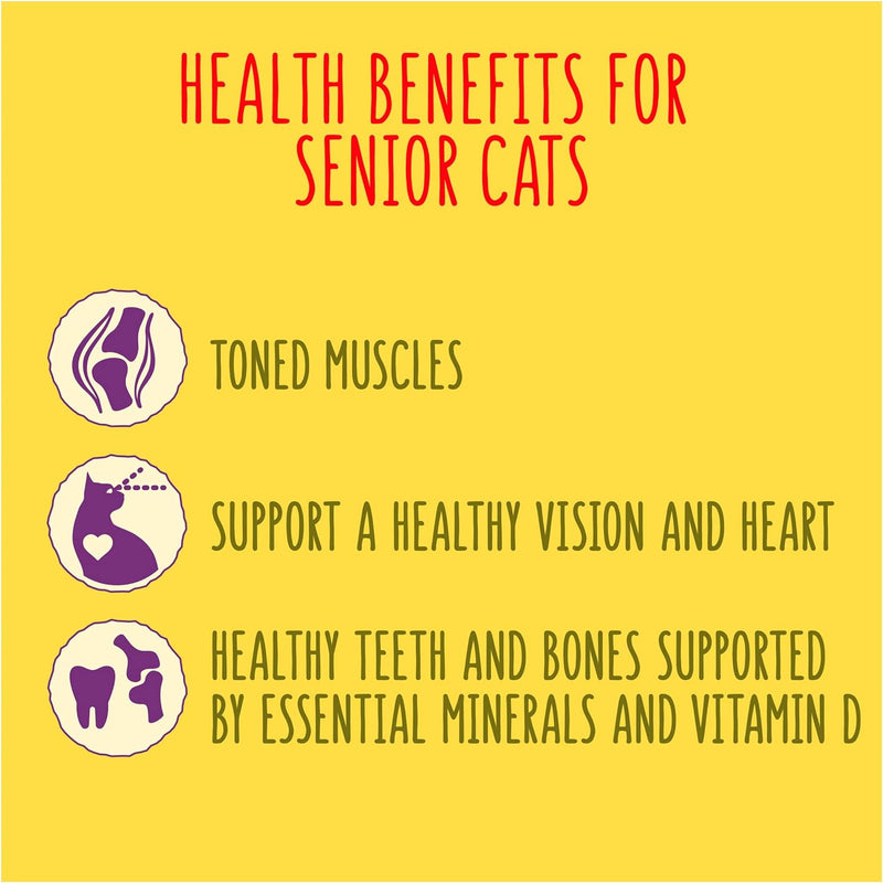 Formulated for senior cats of seven years or older. Older cats tend to rest more and run less, burning less energy and requiring fewer calories from their food. High quality protein becomes more important to help keep your senior cat in good shape and to support his vitality. Go-Cat Senior 7+ is 100% complete and balanced nutrition with wholesome chicken, vegetables and rice. It contains high quality protein to meet the nutritional needs of senior cats.
