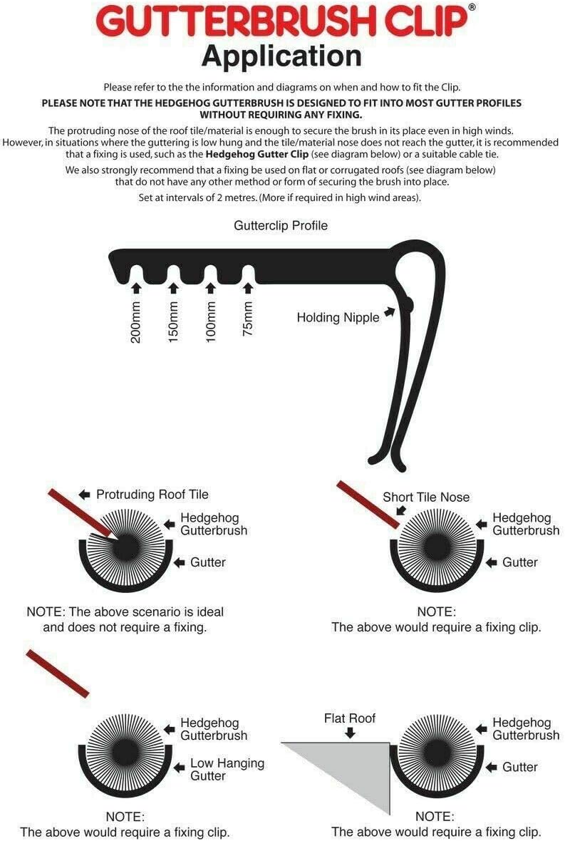 • USE WITH - The Hedgehog GutterClip are compatible with UPVC square and round guttering profiles with any brush size. They are not suitable for deep flow or classic profiles.