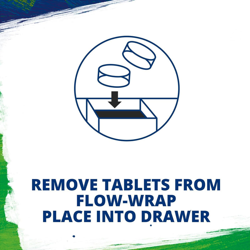 • There’s no need for any measuring and no net required! Just take your tablets (using the easy to open flow wrap for extra convenience) and place them directly into your drawer Tablets are pre-measured they help prevent overdosing and because they are concentrated just two small tablets are enough to deliver brilliant results Tablets per Box: 56 Quantity: