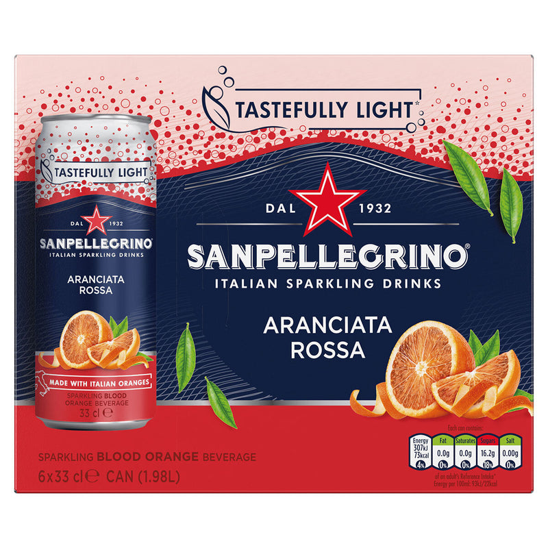 San Pellegrino Italian Sparkling Drinks Tastefully Light Sparkling Blood Orange Canned Soft Drink 24 x 330ml | 69 kCals per Can