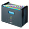 This elegant Snopake Eligo Desk Expander contains 13 compartments for organised filing. The unique expanding landscape design is ideal for use on a desk or shelf where space is limited. The file comes with carry handles for easy transportation and colour-coded insert tabs for indexing. The file is made from stylish, durable, 1.8mm thick black polypropylene and measures W320 x D65 x H255mm.