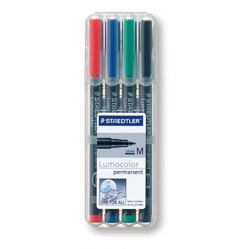 Staedtler 317 Lumocolor Pen (1mm) Permanent Medium Assorted (Wallet of 4)