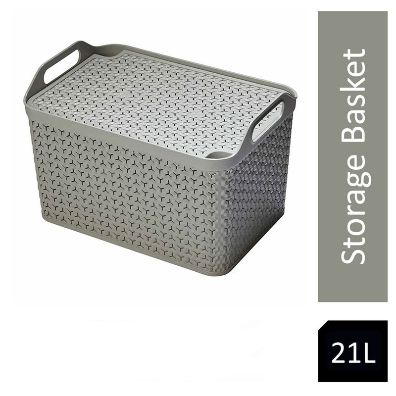 Strata Grey Large 21L Handy Basket With Lid {29cm x 43.5cm}