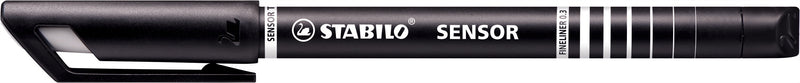 The STABILO SENSOR® is a classic fineliner with a unique cushion sprung tip which reacts to your writing style. Whether you glide over the paper or apply more pressure, the nib adjusts to give you smooth, comfortable writing. Line width 0.3mm This pack contains 10 Black pens