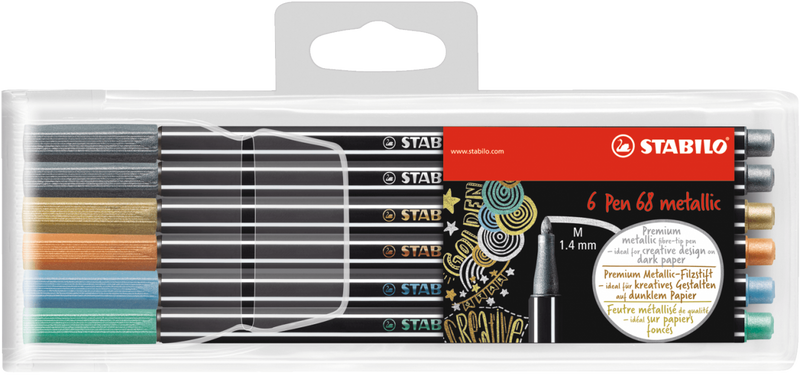 STABILO Pen 68 Fibre Tip Pen 1.4mm Line Metallic Assorted Colours (Wallet 6) - 6806/8-11-01