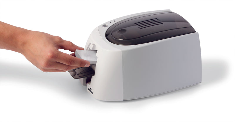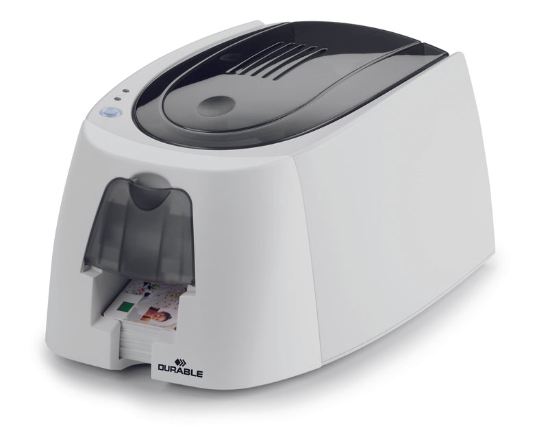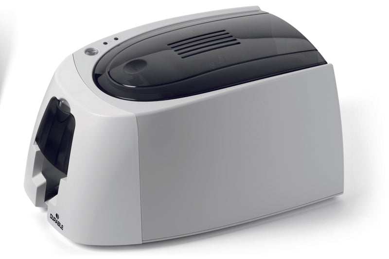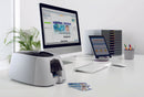 Create and print your own badges and cards from the comfort of your own desk with DURACARD ID 300, the all-in-one Desktop printer for printing plastic ID cards, membership cards, security passes, loyalty cards and much more. Supplied with a CMYK colour ribbon and 100 blank cards. The print output is exceptional with full colour edge-to-edge printing or monochrome black and white as an option. With easy to change card feeder and output hopper for 25 thick or 40 thin cards at the front of the printer.
