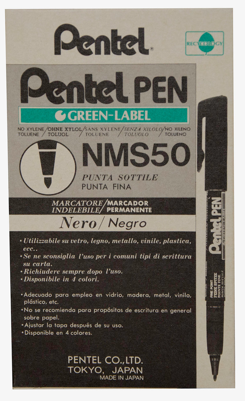 Pentel Fine Point Permanent Marker NMS50 black is suitable for use on most surfaces in offices and domestic environments. The NMS50 is a low odour permanent marker that does not contain xylene or toluene with a 2mm tip giving approximately 1mm line width. It is also made from 89% recycled plastic with a ventilated safety cap.