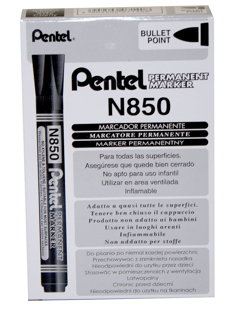 Pentel N850 Permanent Marker Bullet Tip 2.1mm Line Black (Pack 12) - N850-AE