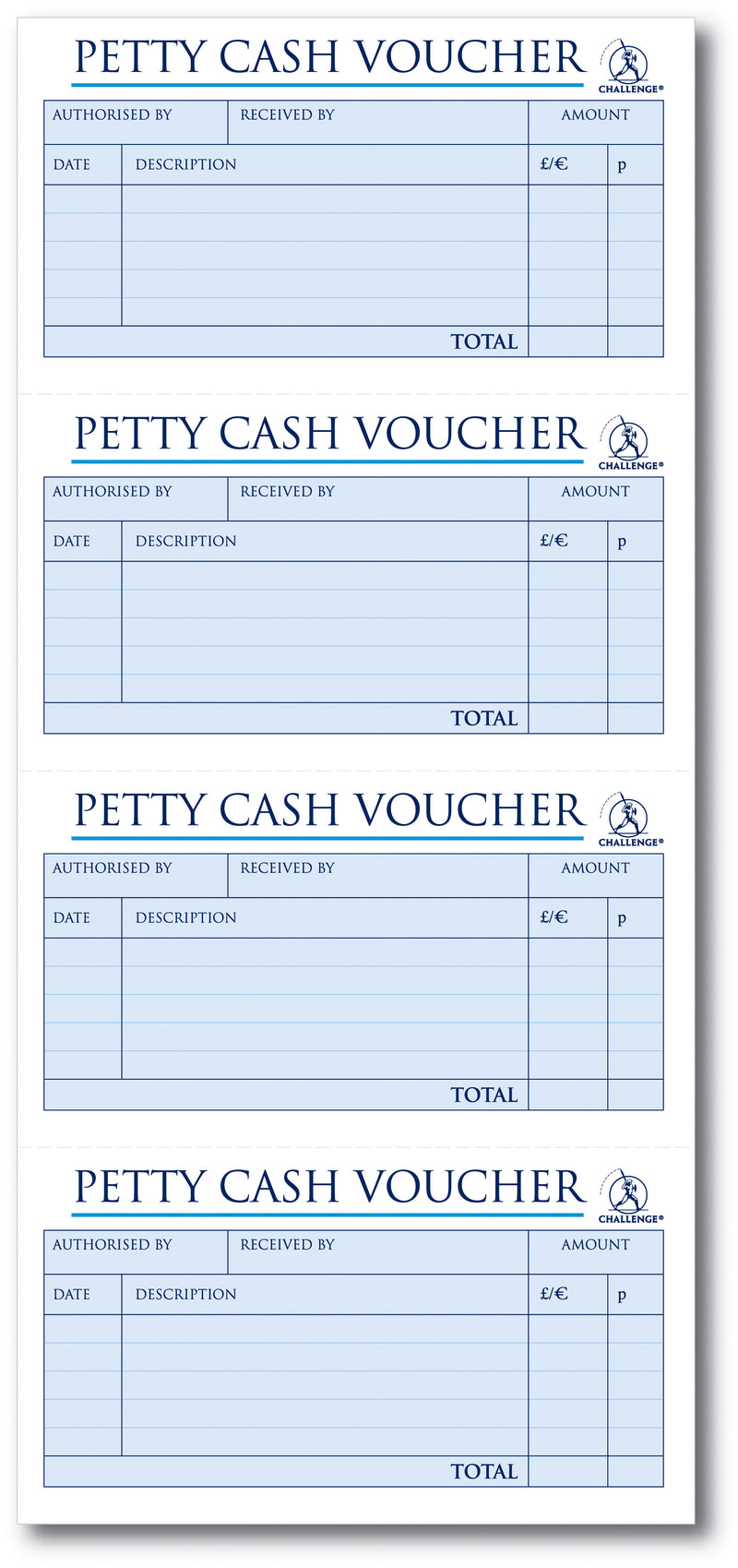 Record transactions with carbonless duplicates using this Challenge petty cash book. The 200 duplicate slips are colour coded for easy use, with white top copies and blue duplicates. The wire binding allows you to lie the book flat on your desk or fold it back on itself for portable, flexible usage. Combined with perforated pages for ease of removal, this pad is ideal for use in retail, hospitality and office environments. This pack contains 1 pad measuring 280 x 141mm.