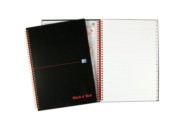 Black n Red Notebook Wirebound A4 Hardback A-Z Ruled 140 Pages 100080232