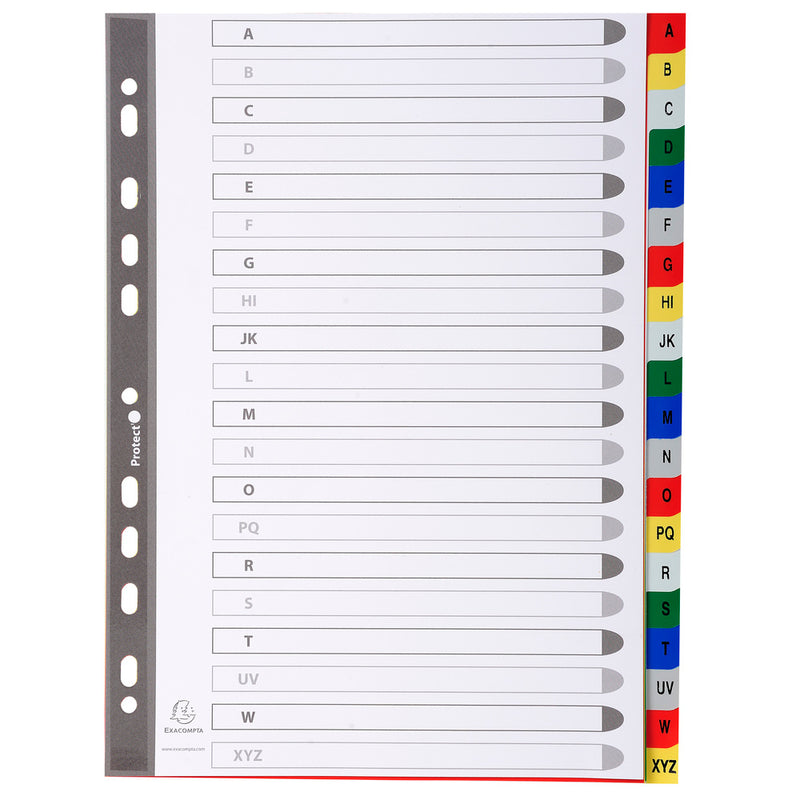 Exacompta Index A-Z A4 120 Micron Polypropylene Bright Assorted Colours - 94E