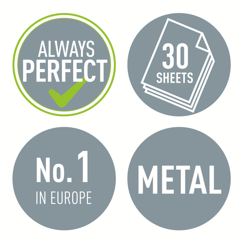 Sturdy metal punch for everyday use. Robust and reliable. Patented easy slide-in grip zone and ultra sharp stamps reduce punching effort.
