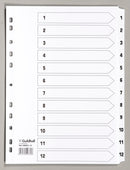 Exacompta Index 1-12 A4 160gsm Card White with White Mylar Tabs - MWD1-12Z