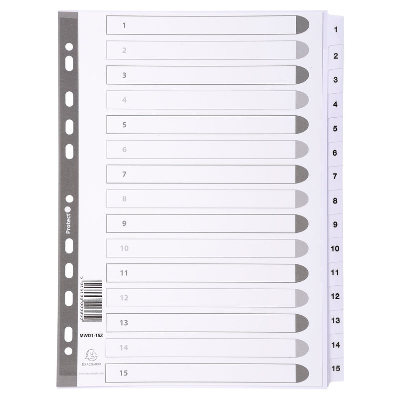 Exacompta Index 1-15 A4 160gsm Card White with White Mylar Tabs - MWD1-15Z