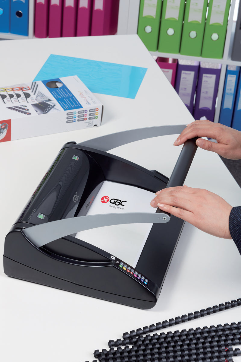 The CombBind® C200 is ideal for medium volume, shared use. It combines a punch capacity of up to 20 80gsm sheets with a binding capability of up to 330 sheets using 38mm spines. With a unique low force punch and sheet alignment indicators, binding documents is easier than ever.