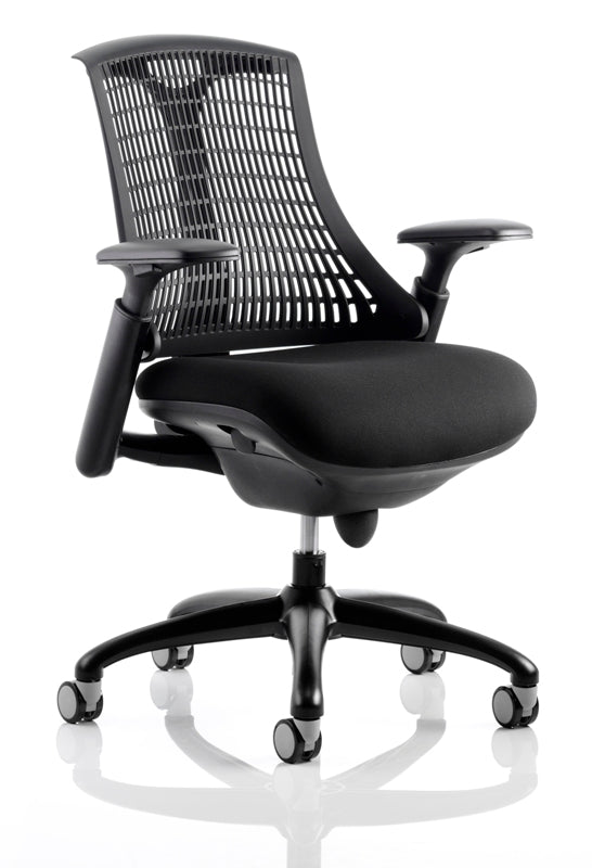 The Flex uses modern materials to create a chair that is practical and innovative with features such as pliable and flexible backrest, adjustable gel padded arms, a large cushioned seat with waterfall front and an enclosed mechanism.
