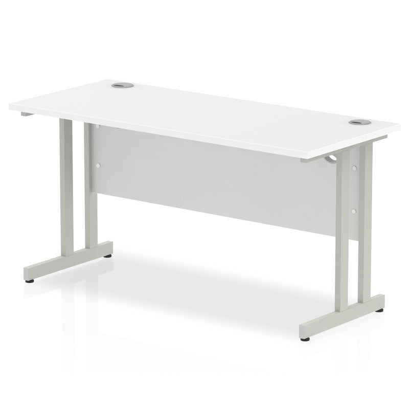 Impulse 1400 x 600mm Straight Desk White Top Silver Cantilever Leg MI002197