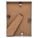 Satin Silver Aluminium 9mm wide extruded profile. With non-glass fronts making them ultra light and ideal for home or office use. Drop in MDF back with strut to allow landscape or portrait display. Backs held in place by spring clips that also act as hanging hooks. Shrinkwrapped.
