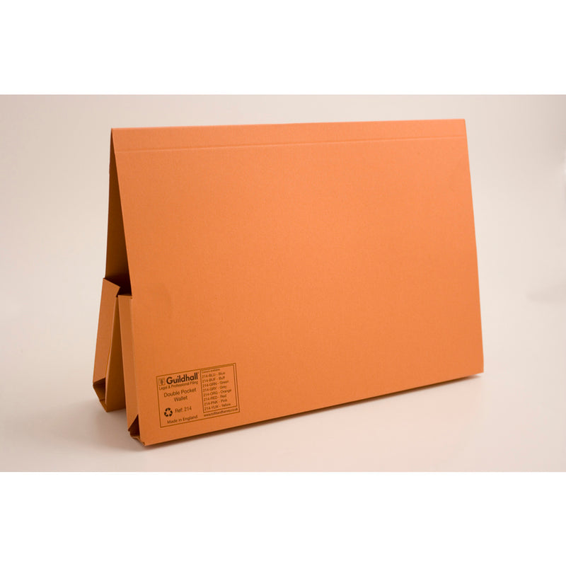 Guildhall Double Pocket Legal Wallet Manilla Foolscap 315gsm Orange (Pack 25) - 214-ORGZ