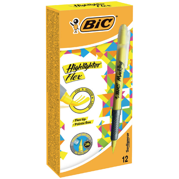Bic Flex Highlighter Pen Chisel Tip 1.6-3.3mm Line Yellow (Pack 12) - 942040