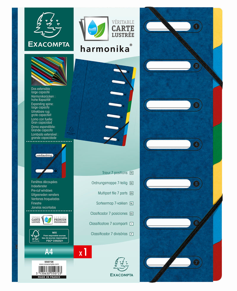 Exacompta Harmonika Multifile Manilla A4 7 Part 425gsm Blue - 55072E