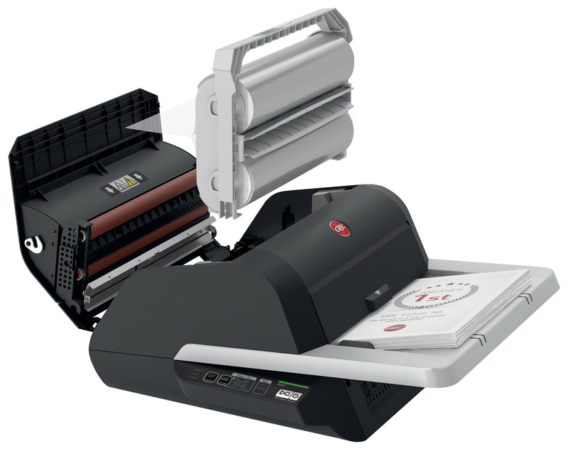 Unique easy load film cartridge for use with the GBC Foton 30 Automatic laminator. Simply open the lid and lift out and replace the easy load 75 micron film cartridge. Laminates up to 250 A4 documents