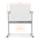 - • Twice as much space with the double sided 1200 x 900mm magnetic glass surfaces that rotates horizontally (board flips top to bottom) to provide 2 large un-obstructed writing areas for brainstorming ideas or displaying printed notices