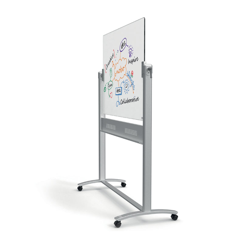 - • Stylish frameless glass revolving mobile whiteboard ideal for sharing or presenting ideas and plans in training environments, lecture theatres, meeting rooms and communal areas around the workplace where wall space is limited
