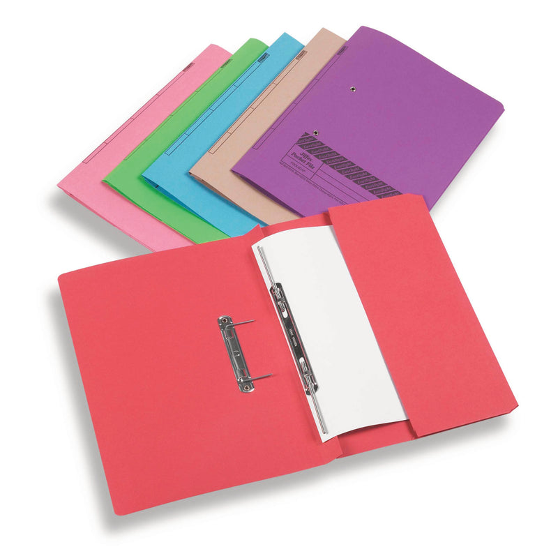 Ideal for storing quotes, projects and personal documents, as well as archiving into storage systems. Premium quality 315gsm manilla provides added strength & durability. The mechanism allows quick and easy insertion and removal of punched papers, and the compressor bar ensures contents are held flat. The pre-printed labelling area allows easy referencing. 32mm capacity for foolscap and A4. Available in packs of 50.
