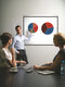 Manual spring retraction wall screen for wall or ceiling mounting.