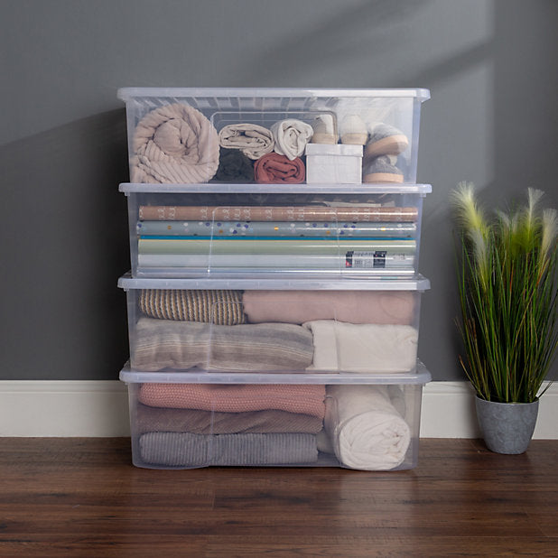 Wham Crystal Clear Plastic Storage Box 32 Litre Ideal Under Bed Storage