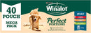 Winalot 40 Pouch Mega Pack of Jelly Perfect Portions includes three different flavours - With Beef and Carrots, With Chicken and Peas, and With Lamb and Green Beans. Containing no added colourants, and being 100% complete and balanced, this dog food helps support shiny coat and healthy skin.